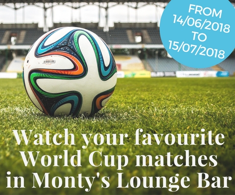 Watch live coverage of your favourite World Cup matches on our giant screen in the Monty’s Lounge Bar and indulge yourself with a juicy Burger and a pint of Beer or with a delicious Sirloin Steak and a glass of Premium House Wine.